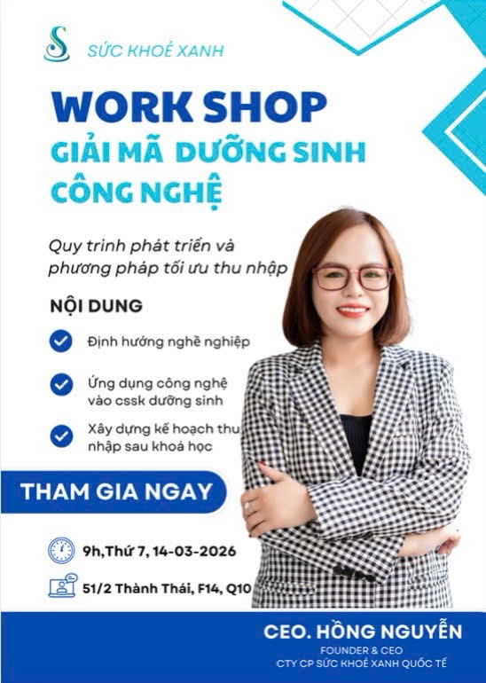 WORKSHOP: GIẢI MÃ DƯỠNG SINH CÔNG NGHỆ ĐÔNG Y – Sức Khoẻ Xanh