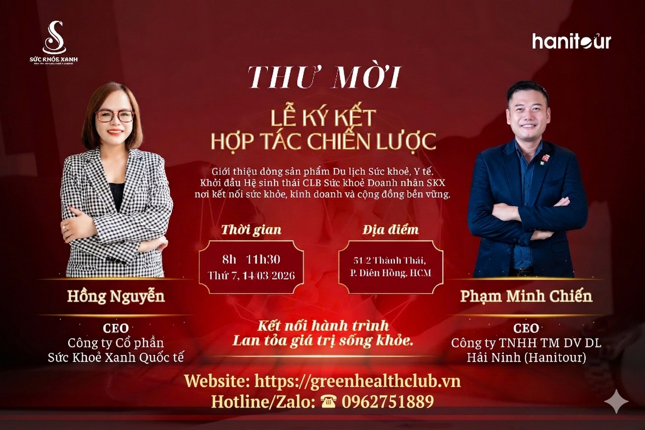THƯ MỜI THAM DỰ LỄ KÝ KẾT HỢP TÁC CHIẾN LƯỢC: SỨC KHOẺ XANH × HANITOUR